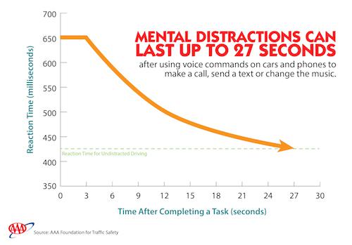 Quelques 320 participants ont courageusement pris le volant pour cette étude menée par des chercheurs de l’Utah (Etats-Unis). 257 d’entre eux ont conduit 10 modèles de véhicules produits en 2015 possédant une commande vocale centralisée. Les autres ont utilisé 3 types de systèmes d’exploitation de smartphone avec commande vocale (Cortana, Google Now, Siri). Et ceux qui s’imaginent que parler à l’appareil aide à être moins distrait risquent d’être déçus : il faut 15 à 27 secondes pour récupérer une concentration correcte selon l’appareil. Cela vaut même lorsqu’on est arrêté au feu rouge.