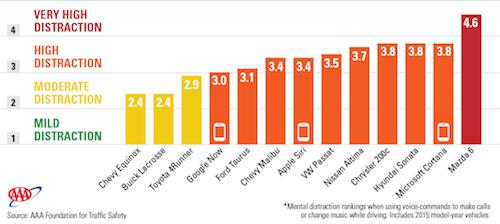 Les travaux ont même permis d’établir une distinction entre les systèmes d’exploitations qui perturbent le plus et le moins les pilotes. La commande centralisée de la Mazda 6 est de loin la mauvaise élève, suivie de près par le système sur smartphone Cortana. Les « Apple maniacs » vont pour une fois devoir mettre leur fierté dans leur poche, car c’est bien le système Google Now qui perturbe le moins la conduite par rapport à Siri. En revanche, les dispositifs les moins gênants restent ceux qui sont intégrés aux voitures.