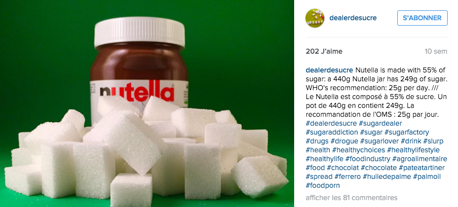 C'est le nouveau compte Instagram à la mode. « @dealerdesucre », comme il s'appelle, s'est donné pour objectif de nous renseigner sur le nombre de sucres que l'on trouve dans nos aliments favoris.