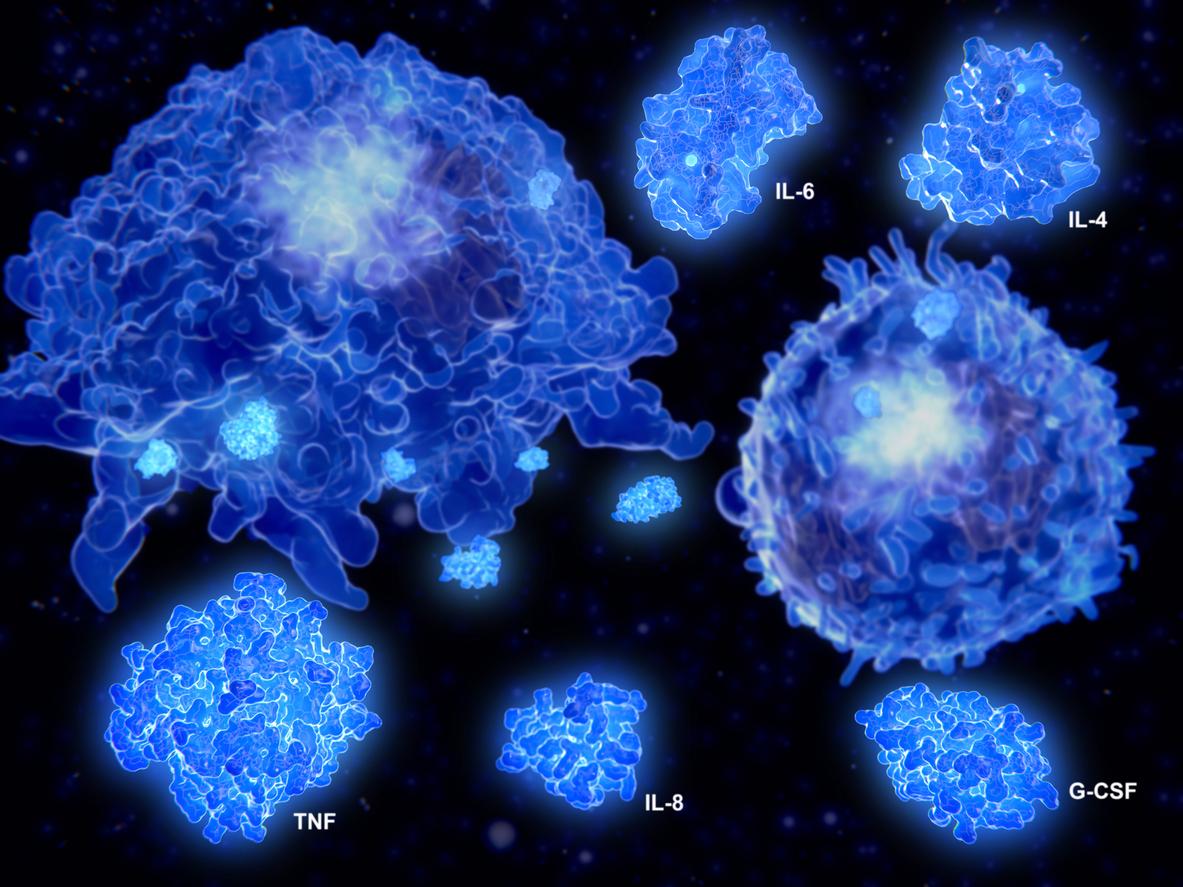 Les cytokines sont des molécules polypeptidiques — notamment sécrétées par des cellules telles que les lymphocytes et les macrophages et qui sont impliquées dans la régulation des réponses immunitaires. Elles sont libérées par l’organisme en cas d’attaque par un agent pathogène. Mais il arrive que le système immunitaire "s’emballe" en sécrétant un nombre trop important de cytokines, qui créent alors des lésions dans les tissus. Cette réponse immunitaire inadaptée est particulièrement novice et s’avérer fatale.