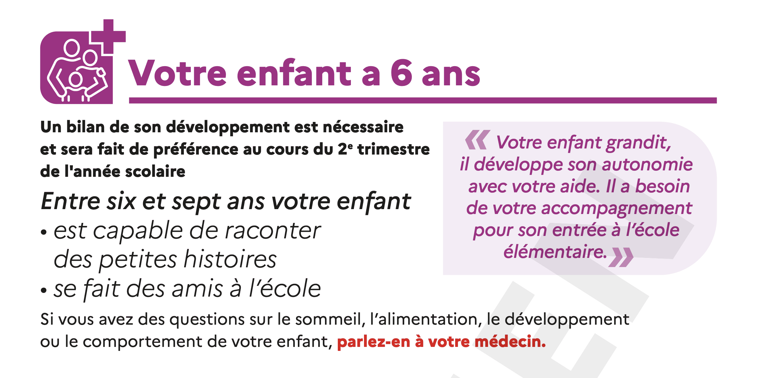 - L'objectif de ce nouvel examen est d’assurer un suivi complet et de détecter précocement d’éventuels troubles du développement.