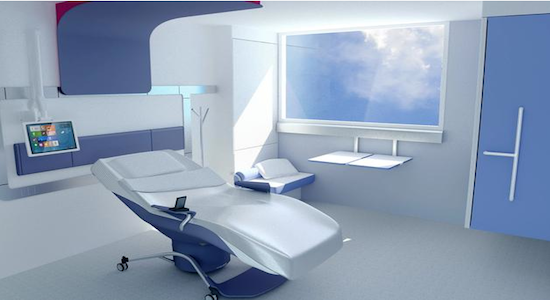 Outre la modularité du mobilier, les technologies de l’information sont également mises à contribution. Pour la qualité des soins grâce au dossier médical consultable sur une tablette de chevet mais aussi pour le patient qui peut profiter de la technologie Kinect des consoles de jeu et allumer la télévision par simple détection de mouvement. Certains pourraient bien prendre goût à cette chambre futuriste…