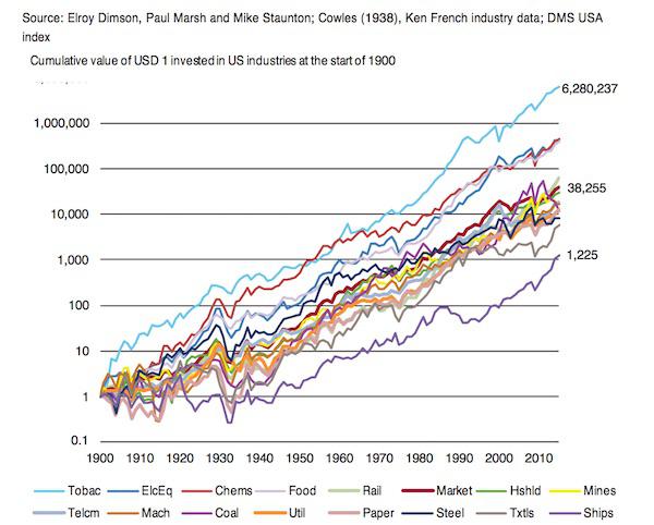 Sur le long terme, l’industrie du tabac a enregistré des bénéfices record, avec un rendement annuel moyen aux alentours de 15 %. Un dollar investi dans les compagnies de tabac en 1900 en vaut aujourd’hui 6,3 millions... Selon les calculs du site Sydney Morning Herald, « c’est 165 fois plus que la moyenne enregistrée par les autres secteurs industriels ». Aucun n’est parvenu à remplir de tels objectifs sur le long terme.